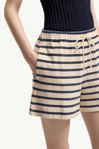 Inspired by a nautical summer mood, these ribbed shorts for women feature a classic striped patten. An easy choice for warm-weather days, these shorts are crafted from striped cotton. The bottoms are completed by an elasticized waist with an adjustable drawstring. DETAILS - Crafted from cotton - Elasticized waistband with drawstring - Logo patch SIZE AND FIT - The model is wearing a size XS and is 178 cm tall - Loose fit COMPOSITION BASE FABRIC: 100% Cotton Product code L10938H0001089BEBF07 Made in Turkey