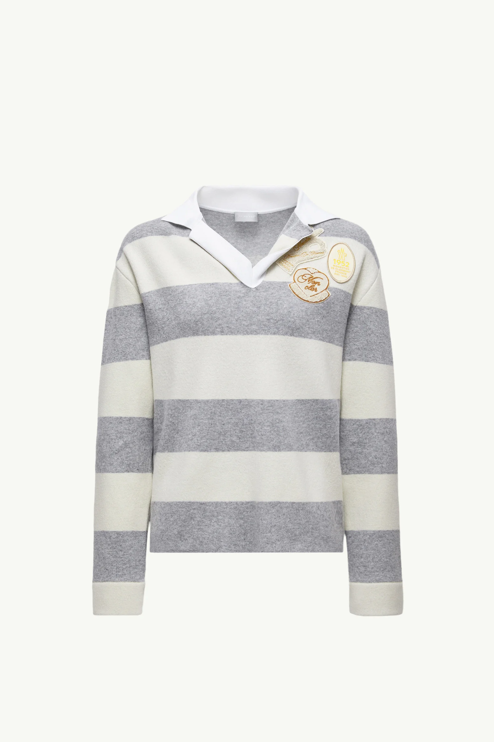 Nodding to college sports uniforms, this wool polo shirt for women features a striped pattern. An elevated interpretation of a sporty design, this striped polo shirt is knit from soft wool. Channelling the collection's collegiate aesthetic, the piece nods to varsity logos with embroidered patches. DETAILS - Crafted from carded wool - Cotton lining - Gauge 12 - Collar - Long sleeves - Embroidered logo patches SIZE AND FIT - The model is wearing a size XS and is 175 cm tall - Oversized fit COMPOSITION BASE FABRIC: 62% Virgin wool, 35% Cotton, 2% Polyamide / Nylon, 1% Elastane / Spandex; 1 MATERIAL: 100% Cotton Product code K20939A00005M4283P09 Made in Italy