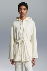 Inspired by the ‘90s minimalist aesthetic, the women's Suir rain jacket fuses form and function. A true transitional style, the Suir rain jacket is crafted from recycled longue saison, an ultra-lightweight, water-repellent nylon fabric. The hooded jacket comes in an oversized fit, while an adjustable waistline allows you to play with proportions and silhouettes. - Crafted from recycled longue saison - Cotton cloth lining - Hood - Zipper closure - Patch pockets - Waistband with drawstring fastening - Synthetic material logo patch SIZE AND FIT - The model is wearing a size 0 and is 180 cm tall - The model measures: bust 81 cm, waist 60 cm, hips 87 cm - Oversized fit COMPOSITION AND CARE EXTERIOR: 100% Polyamide / Nylon; LINING: 100% Cotton; HOOD LINING: 100% Polyamide / Nylon Hand wash; Do not bleach; Do not tumble dry; Ironing maximum temperature 110°C - without steam; Do not dry clean; Do not professionally wet clean; Flat dry in the shade; Wash separately; Do not twist or wring; do not soak; It is advisable to wash and iron the garment on reverse. Product code I10931A00138M2760034 Made in Romania