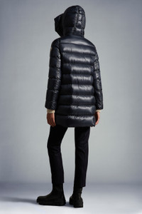 The Suyen long down jacket for women is a graphic, versatile style that combines a comfortable design and contrast color details. A sophisticated, must-have piece for winter in the city, the Suyen long down jacket is crafted from shiny nylon léger. The boudin-quilted down coat boasts a feminine flared shape that layers well over daytime and evening looks. - Crafted from shiny nylon léger - Shiny nylon léger lining - Down-filled - Adjustable hood with elastic drawstring fastening - Zipper closure - Zipped pockets - Felt logo COMPOSITION AND CARE EXTERIOR: 100% Polyamide / Nylon; LINING: 100% Polyamide / Nylon; PADDING: 90% Down, 10% Feather Hand wash; Do not bleach; Do not tumble dry; Ironing maximum temperature 110°C - without steam; Dry cleaning in tetrachloroethene or with hydrocarbons; Do not professionally wet clean; Dry flat; Wash separately; Do not twist or wring; do not soak; It is advisable to wash and iron the garment on reverse. Product code I20931B2000053052778 Made in Romania