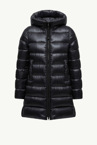 The Suyenne mid-length down jacket for women is a graphic, versatile style that combines a comfortable design and a flared shape. A sophisticated, must-have piece for winter in the city, the Suyenne mid-length down jacket is crafted from lightweight nylon. The boudin-quilted puffer boasts a feminine flared shape that layers well over daytime and evening looks. DETAILS - Crafted from recycled longue saison - Recycled longue saison lining - Down-filled - Adjustable hood - Zipper closure - Pockets with snap button closure - Elastic cuffs - Logo patch SIZE AND FIT - Regular fit - Slim shoulders - Flared waist and hips - Length (collar to hem): 80 cm COMPOSITION EXTERIOR: 100% Polyamide / Nylon; LINING: 100% Polyamide / Nylon; HOOD LINING: 100% Polyamide / Nylon; PADDING: 90% Down, 10% Feather Product code K20931C00012597YG999 Made in Hungary or Romania
