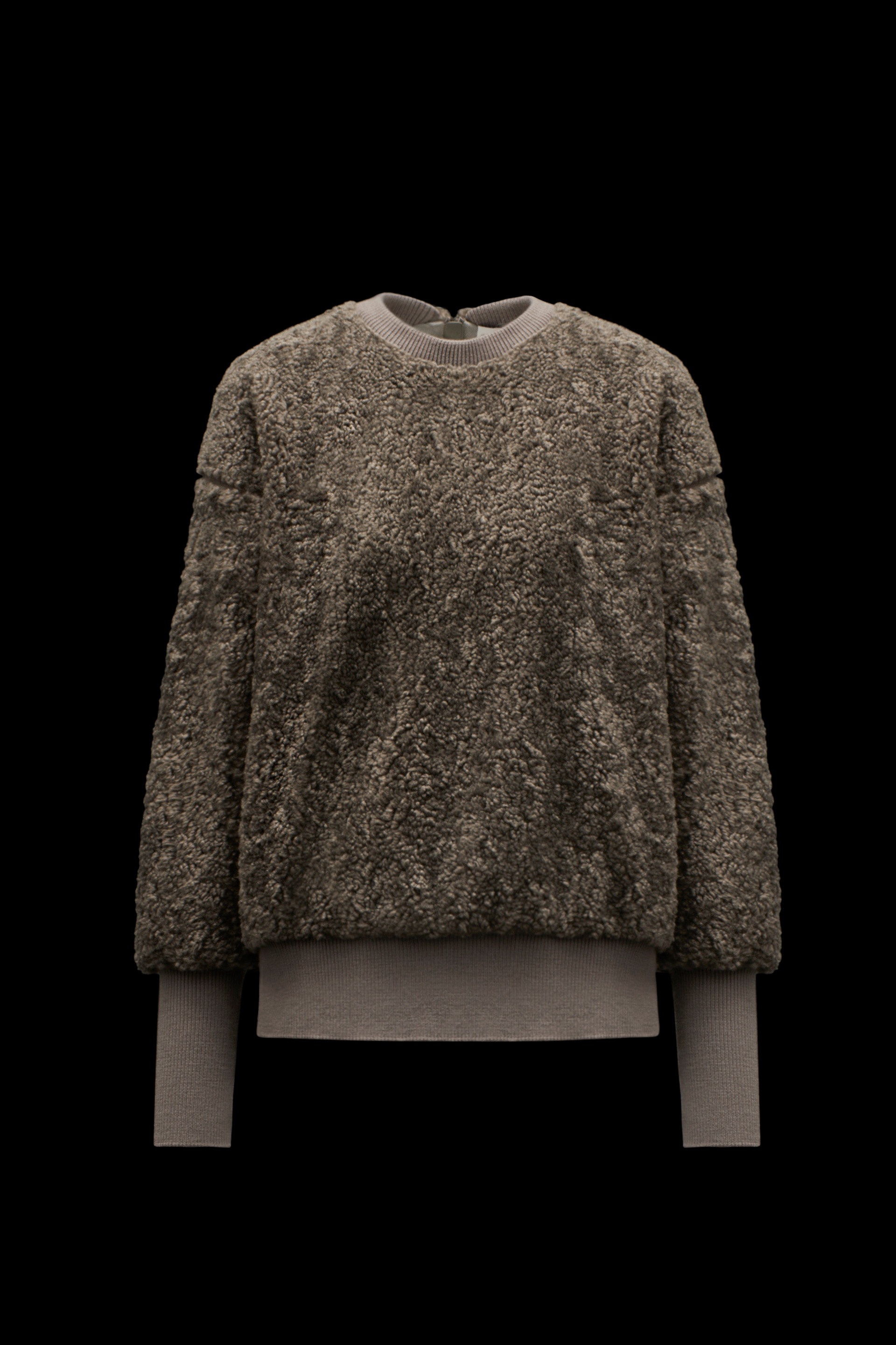 This soft, warm faux shearling fur sweatshirt for women is from the Moncler HYKE n° 4 collection, part of the Moncler Genius project. The simple, clean lines and functional details are designed to meet the needs of a contemporary lifestyle. Its generous fit is finished with extended rib-knit cuffs and bottom band that not only make for a snugger fit but also define the overall look while a zipper on the back and side ensures it is easy to remove. - Sweatshirt for women from the Moncler HYKE line, collection n° 4 of the Moncler Genius project - Crafted in faux shearling fur - Crewneck and long sleeves - Technical mesh lining - Rib-knit collar, cuffs and bottom band - Back fastening with AquaGuard® zipper by YKK, Highly Water Repellent Zippers - Recycled polyester logo zipper pull - Moncler HYKE logo on sleeve SIZE AND FIT - The model is wearing a size S and is 179 cm tall COMPOSITION AND CARE LINING: 100% Polyester; BASE FABRIC: 100% Polyester; Ribs: 95% Wool, 5% Polyester Hand wash; Do not bleach; Do not tumble dry; Do not iron; Do not dry clean; Do not professionally wet clean; Flat dry in the shade; Wash separately; Do not twist or wring; do not soak; It is advisable to wash with the garment on reverse. Product code G209K8G0000754AM625L Made in Bulgaria