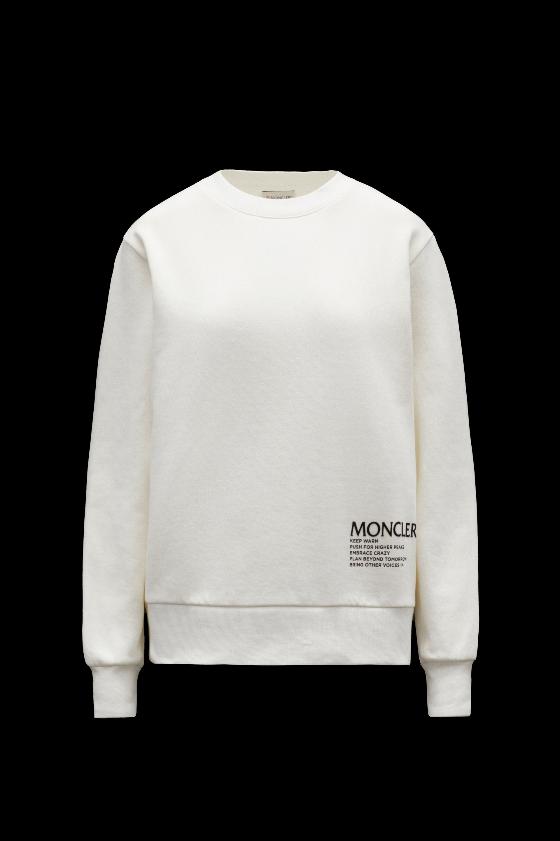 This Moncler sweatshirt is a true statement of style that delivers the brand’s aesthetic and mottos with an impactful graphic. A versatile design with bold details, this sweatshirt is a true statement of style. Crafted in cotton French terry, it showcases a long sleeve crewneck silhouette with a classic fit. It is characterized by a graphic with Moncler’s mottos on the side. - Sweatshirt for women - Crafted in cotton French terry - Crewneck and long sleeves - Rib-knit edges - Graphic with Moncler’s mottos on the side SIZE AND FIT - The model is wearing a size S and is 180 cm tall - Designed for a comfortable fit COMPOSITION AND CARE BASE FABRIC: 92% Cotton, 8% Polyamide / Nylon; Ribs: 98% Cotton, 2% Elastane / Spandex Wash max 30°C - Mild process; Do not bleach; Do not tumble dry; Ironing maximum temperature 110°C - without steam; Do not dry clean; Professional wet cleaning - mild process; Flat dry in the shade; Wash separately; It is advisable to wash and iron the garment on reverse.; Do not iron printed part Product code G20938G00024809LC033 Made in Turkey