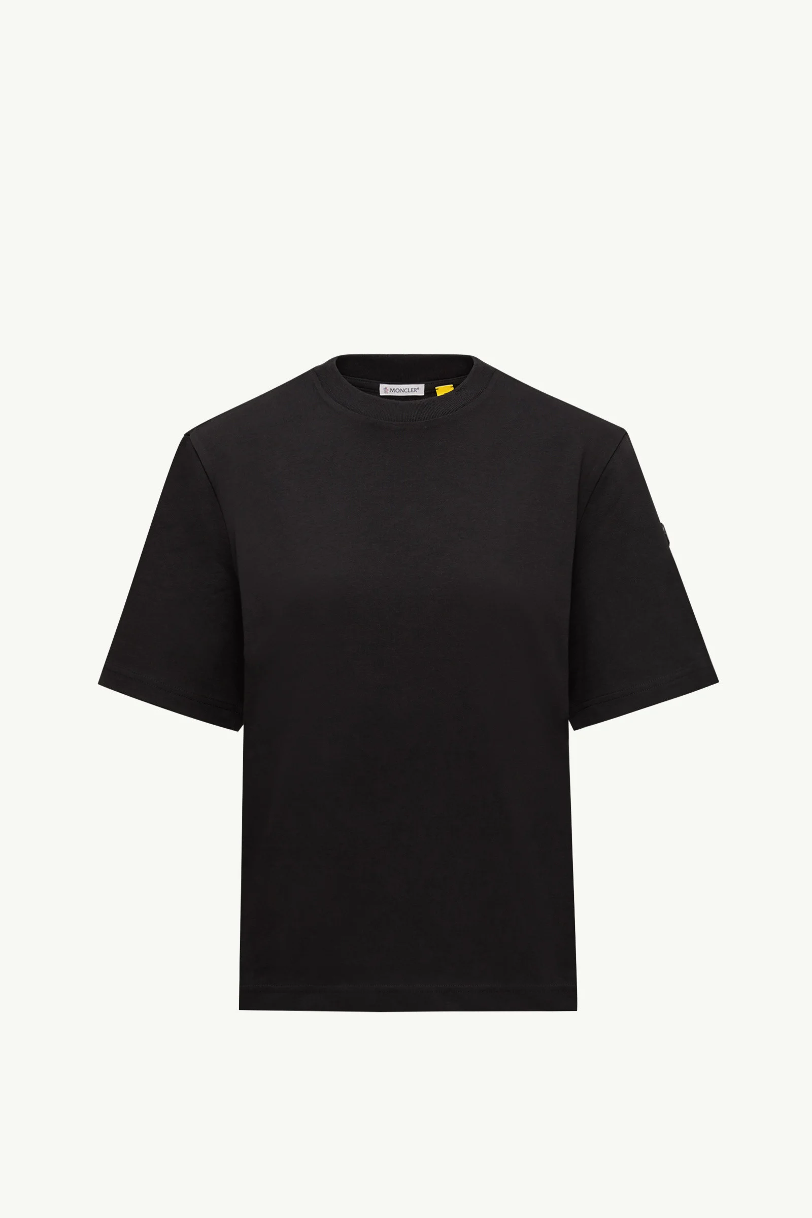 Embodying understated elegance, this Moncler x EE72 by Edward Enninful t-shirt is adorned with a ton-sur-ton logo accent. Drawing from the Moncler x EE72 by Edward Enninful collection's timeless aesthetic, this t-shirt is crafted from cotton jersey. The Moncler Genius crew neck features in a co-creation of sleek all-black layers, effortlessly creating bold monochromatic looks. DETAILS - Crafted from cotton jersey - Rib knit crew neck - Short sleeves - Logo patch SIZE AND FIT - The model is wearing a size XS and is 177 cm tall - Regular fit COMPOSITION BASE FABRIC: 100% Cotton; Ribs: 100% Cotton Product code K24038C0000189AUG999 Made in Turkey