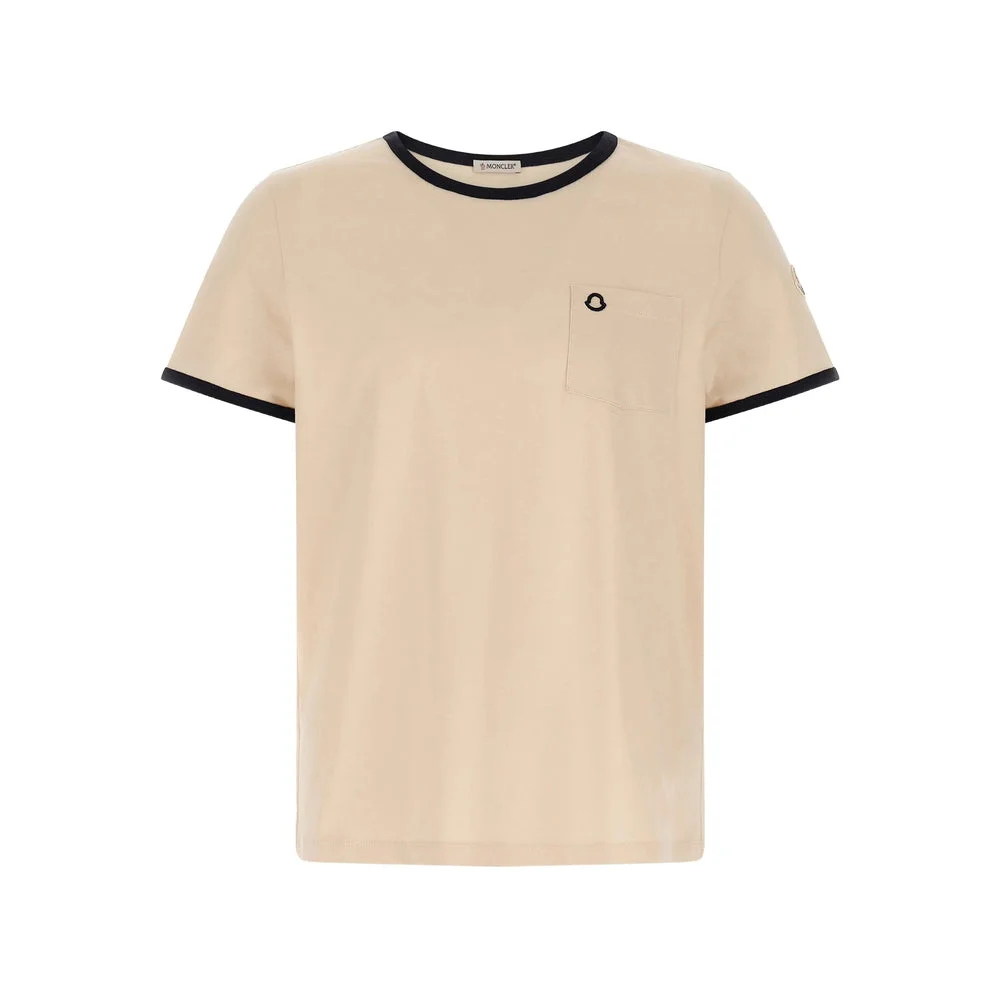 beige crew neck short sleeves logo patch contrasting trim chest pocket - Colour: Neutral - Composition: Cotton: 100.0% - Country Of Manufacture: Turkey - MPN: 89AUO8C00019F07