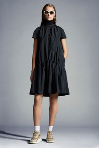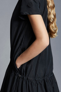 A timeless addition to a feminine wardrobe, this drop waist dress is crafted from taffeta. A versatile design, this taffeta dress transitions seamlessly from the office, to after-work events and weekends in the city. The feminine dress features a drop waist, easily adjusted with drawstring fastening. - Crafted from a taffeta - Crew neck - Short sleeves - Elasticized waistband with drawstring fastening - Zipper closure on back SIZE AND FIT - The model is wearing a size S and is 177 cm tall - The model measures: chest 82 cm, waist 60 cm, hips 89 cm COMPOSITION AND CARE BASE FABRIC: 100% Polyester Wash max 30°C - Mild process; Do not bleach; Do not tumble dry; Ironing maximum temperature 110°C - without steam; Dry cleaning in tetrachloroethene or with hydrocarbons - mild process; Professional wet cleaning - mild process; Flat dry in the shade; Wash separately; It is advisable to wash and iron the garment on reverse.; PROTECT TRIMS WHILE WASHING Product code H10932G0001054AWA999 Made in Romania