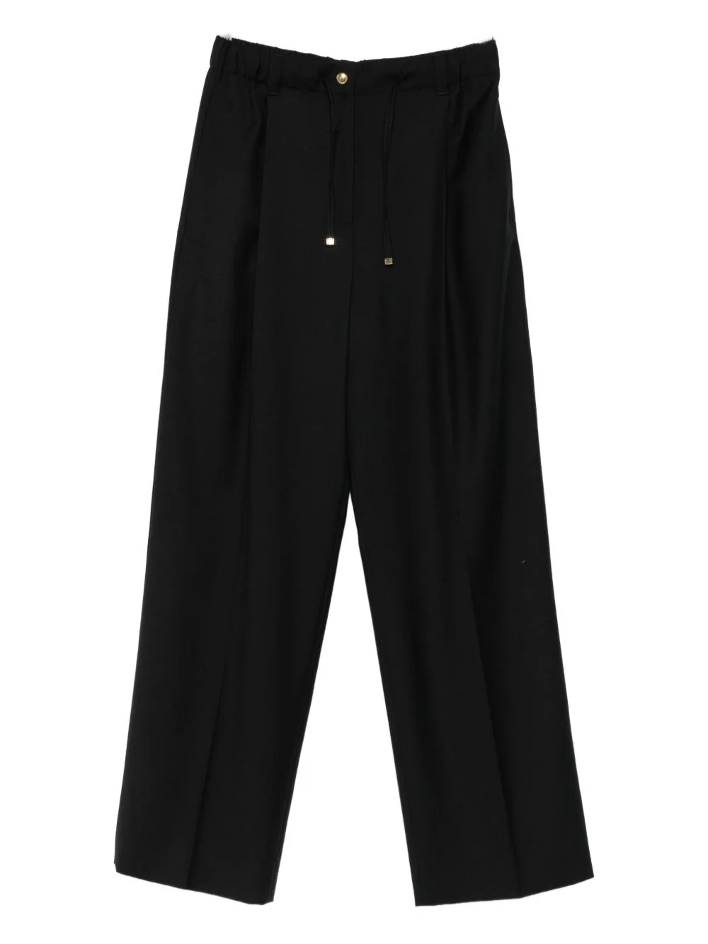 drawstring trousers Highlights - Black - Drawstring fastening - Gold-tone hardware - Elasticated waistband - Front pleats - Straight leg Imported Composition Virgin Wool 100% SIZE & FIT Model measurements Height 5 ft 9 in(1.75 m) Bust/Chest 32.67 in(83 cm) Hips 36.22 in(92 cm) Waist 24.8 in(63 cm)