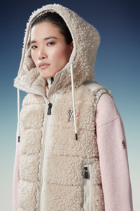 Chalet chic is epitomized in this padded teddy vest from the women's Moncler Grenoble collection. Supremely warm, this vest is crafted from teddy fleece. The zip-up style is padded, easily doubling as outerwear when the weather permits. - Crafted from teddy fleece and contrasting-colored nylon laqué - Nylon laqué lining - Down-filled - Adjustable hood - Zipper closure - Zipped pockets - Hem with drawstring fastening SIZE AND FIT - The model is wearing a size S and is 180 cm tall - The model measures: bust 79 cm, waist 60 cm, hips 87 cm - Regular fit COMPOSITION AND CARE LINING: 100% Polyamide / Nylon; HOOD LINING: 100% Polyamide / Nylon; PADDING: 90% Down, 10% Feather; 1 MATERIAL: 100% Polyamide / Nylon; BASE FABRIC: 100% Polyester Wash max 30°C - Mild process; Do not bleach; Do not tumble dry; Do not iron; Do not dry clean; Professional wet cleaning - mild process; Flat dry in the shade; Wash separately; It is advisable to wash with the garment on reverse.; PROTECT TRIMS WHILE WASHING Product code I20988G00026899A921G Made in Moldova