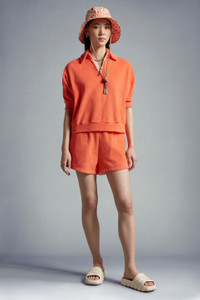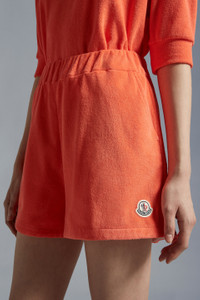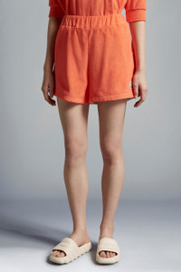 A summer vacation must-pack, these women's terrycloth shorts channel resortwear. A sun-soaked design from a swimwear-inspired collection, these shorts are crafted from plush terrycloth. Featured in vitamin colors, the oversized shorts are best when layered over your favorite swimsuit or paired with breezy tops in zesty tones. - Crafted from lightweight organic terrycloth - Wide elastic waistband - Side slant pockets SIZE AND FIT - The model is wearing a size XS and is 180 cm tall - The model measures: bust 84 cm, waist 61 cm, hips 89 cm COMPOSITION AND CARE BASE FABRIC: 86% Cotton, 14% Polyamide / Nylon Hand wash; Do not bleach; Do not tumble dry; Ironing maximum temperature 110°C - without steam; Dry cleaning in tetrachloroethene or with hydrocarbons - mild process; Do not professionally wet clean; Flat dry in the shade; Wash separately; Do not twist or wring; do not soak; It is advisable to wash and iron the garment on reverse. Product code I10938H00022596LS30A Made in Portugal