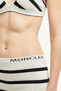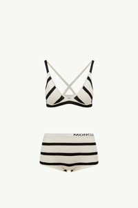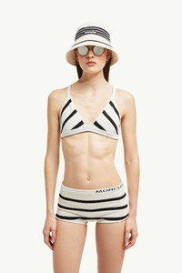 Embellished with a timeless striped pattern, this knit bikini for women embodies the collection's maritime feel. Reminiscent of vintage sailor imagery, horizontal stripes characterize this bikini. The two-piece set is crafted from textured boucle fabric, adding a sophisticated feel. DETAILS - Crafted from a cotton boucle and viscose blend - Striped stockinette stitch with elastic fabric - Gauge 14 - Logo detail SIZE AND FIT - The model is wearing a size XS and is 177 cm tall - Slim fit COMPOSITION PART A: BASE FABRIC: 63% Cotton, 36% Polyamide / Nylon, 1% Elastane / Spandex; 1 MATERIAL: 87% Viscose / Rayon, 12% Polyamide / Nylon, 1% Elastane / Spandex; PART B: BASE FABRIC: 63% Cotton, 36% Polyamide / Nylon, 1% Elastane / Spandex; 1 MATERIAL: 87% Viscose / Rayon, 12% Polyamide / Nylon, 1% Elastane / Spandex Product code K10939G00005M6334P90 Made in Italy