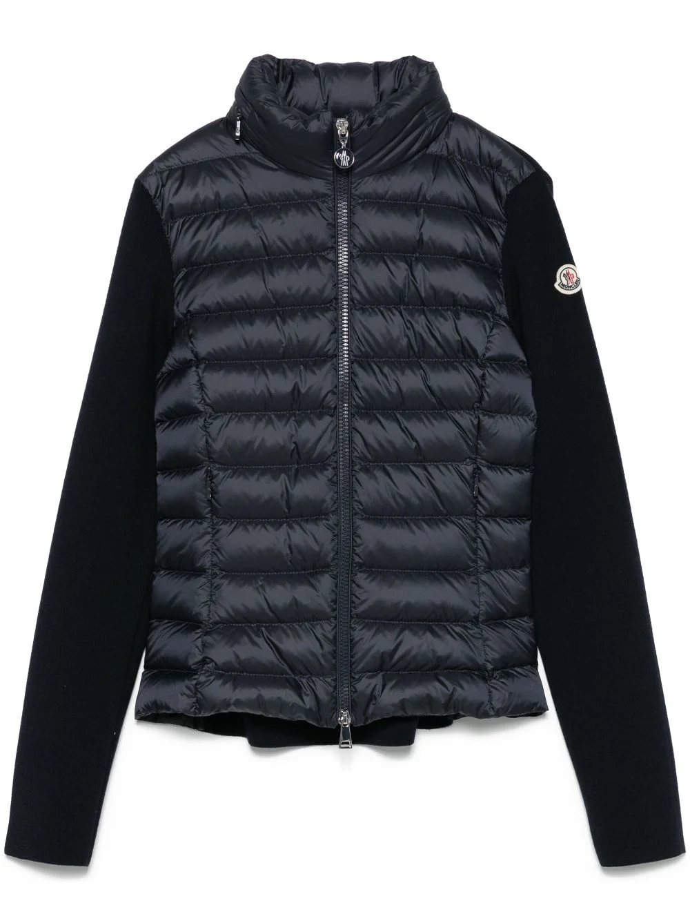 padded zip-up cardigan Highlights - Navy blue - Front two-way zip fastening - Concealed hood - Two side zip-fastening pockets - Logo patch at the sleeve Imported Composition Outer: Polyamide 100%, Virgin Wool 95%, Polyester 5% Lining: Polyamide 100%, Goose Down 90%, Goose Feather 10% SIZE & FIT Model measurements Height 5 ft 10 in(1.79 m) Bust/Chest 31.88 in(81 cm) Hips 35.43 in(90 cm) Waist 23.62 in(60 cm) Washing instructions Dry Clean Only