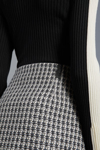 A timeless addition to a sophisticated woman's wardrobe, this A-line mini skirt is crafted from tweed. Encapsulating nonchalant French chic, this mini skirt is crafted from tweed. The classic A-line silhouette is revisited with sharp lines and clean shapes, exuding confidence. - Crafted from lightweight technical tweed - Fringed faille hem - Grosgrain inner waistband - Side zipper closure SIZE AND FIT - The model is wearing a size 40 and is 180 cm tall - The model measures: bust 81 cm, waist 60 cm, hips 87 cm COMPOSITION AND CARE EXTERIOR: 55% Cotton, 26% Viscose / Rayon, 17% Polyamide / Nylon, 2% Polyester; LINING: 65% Polyester, 35% Cotton; 1 MATERIAL: 100% Polyester Do not wash; Do not bleach; Do not tumble dry; Ironing maximum temperature 110°C - without steam; Dry cleaning in tetrachloroethene or with hydrocarbons - mild process; Do not professionally wet clean; Flat dry in the shade; Wash separately; It is advisable to wash and iron the garment on reverse. Product code I10932D00005596PRF09 Made in Romania