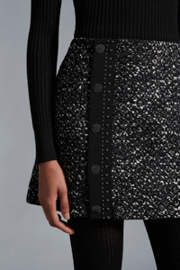 A striking design for women, this tweed mini skirt is a sophisticated addition to a winter wardrobe. A sophisticated design, this mini skirt is crafted from tweed, one of the season's key fabrics. The A-line design is emboldened with studwork. The skirt is best when styled with the season's classic knitwear. - Crafted from tweed - Studded grosgrain - Snap button closure SIZE AND FIT - The model is wearing a size 40 and is 180 cm tall - The model measures: chest 81 cm, waist 60 cm, hips 87 cm COMPOSITION AND CARE EXTERIOR: 27% Wool, 24% Polyester, 22% Polyamide / Nylon, 18% Acrylic, 9% Cotton; LINING: 56% Acetate, 44% Viscose / Rayon Do not wash; Do not bleach; Do not tumble dry; Ironing maximum temperature 110°C - without steam; Dry cleaning in tetrachloroethene or with hydrocarbons - mild process; Do not professionally wet clean; Flat dry in the shade; Wash separately; It is advisable to wash and iron the garment on reverse. Product code H20932D00014596COF90 Made in Hungary