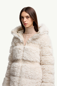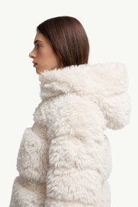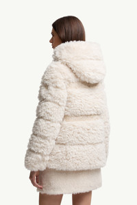 Reimagining outerwear through a sophisticated lens, the Verie short down jacket for women spotlights plush textures and macrame accents. An elegant approach to a classic design, the Verie short down jacket is presented in the softest teddy. Adding a delicate feminine feel, the puffer is accentuated by macrame bands. A warm finishing touch, a hood completes the design. DETAILS - Crafted from teddy - Longue saison lining - Down-filled - Adjustable hood - Macrame trim - Zipper closure - Side pockets - Elastic cuffs - Logo path SIZE AND FIT - Regular fit - Slim shoulders - Flared waist and hips - Length (collar to hem): 64 cm COMPOSITION EXTERIOR: 100% Polyester; LINING: 100% Polyamide / Nylon; HOOD LINING: 100% Polyamide / Nylon; PADDING: 90% Down, 10% Feather; DETAILS PADDING: 100% Polyester Product code K20931A0021089B8L050 Made in Hungary