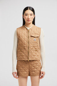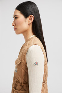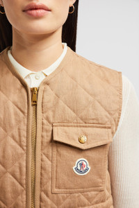 An elevated essential for mild days, the women's Vigny vest blends sophisticated materials with lightweight quilting. A crisp piece for milder months, the Vigny vest is crafted from linen. The sophisticated material is paired with a quilted diamond pattern, adding a classic feel while remaining light. A nipped in waistline and round neck complete the warmer with a feminine feel. DETAILS - Crafted from linen - Recycled polyester lining - Herringbone cotton trim - Padded - Zipper closure - Patch pockets - Chest pocket - Waistband and hem with elastic drawstring fastening SIZE AND FIT - Regular fit - Drawstring allows personalization COMPOSITION EXTERIOR: 100% Flax/Linen; LINING: 100% Polyester; PADDING: 100% Polyester; 1 MATERIAL: 100% Flax/Linen; 2 MATERIAL: 100% Polyester Product code K10931A00100788PY22C Made in Moldova