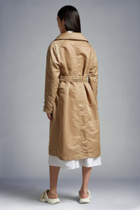 A timeless design is refreshed with a shiny texture in the Villerest hooded satin trench coat from the women's collection. Designed for metropolitan pursuits, the Villerest comes in a timeless trench coat silhouette. Crafted from shiny satin, the lightweight coat is enhanced with a pull-out hood. Featured in earthy hues, the belted trench coat is an investment piece. - Crafted from nylon satin - Pull-out hood with nylon satin lining - Button closure - Pockets with snap button closure - Interior shoulder straps - Nylon satin belt with a leather buckle - Back vent with snap button closure SIZE AND FIT - The model is wearing a size 0 and is 178 cm tall - The model measures: bust 82 cm, waist 60 cm, hips 89 cm - Regular fit COMPOSITION AND CARE BASE FABRIC: 100% Polyamide / Nylon Do not wash; Do not bleach; Do not tumble dry; Ironing maximum temperature 110°C - without steam; Dry cleaning in tetrachloroethene or with hydrocarbons - mild process; Do not professionally wet clean; Flat dry in the shade; Wash separately; It is advisable to wash and iron the garment on reverse.; Remove the belt before washing.; PROTECT TRIMS WHILE WASHING Product code I10931A00140539AY239 Made in Italy