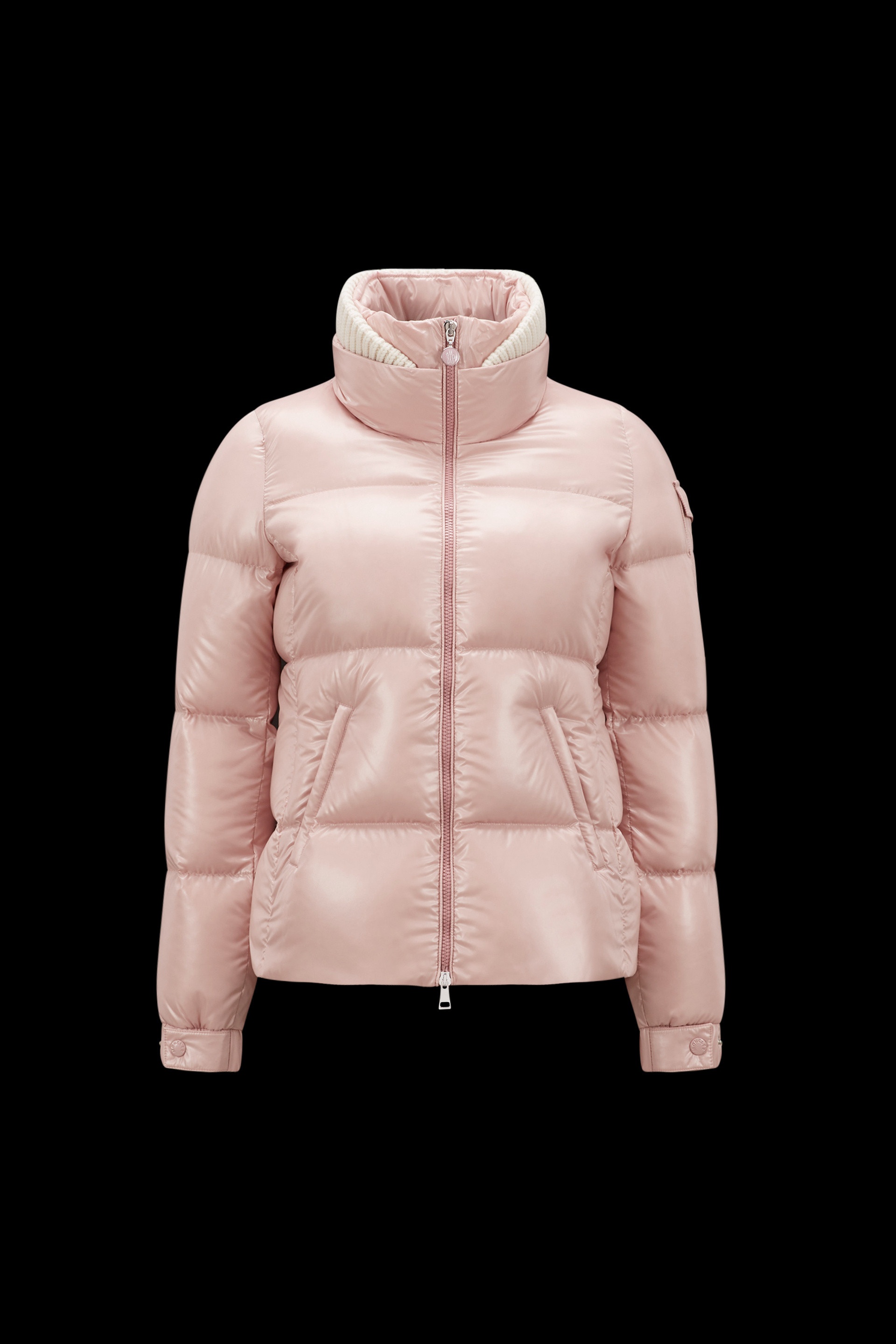 Warm and cocooning, the Vistule short down jacket for women is inspired by winter in the mountains. A feminine take on a classic puffer, the Vistule is crafted from iconic nylon laqué. The short down jacket comes in a classic high neck, boudin-quilted shape. A detachable knit collar adds another layer of warmth when you need it, while an iconic patch pocket on the sleeve adds the finishing touch. - Crafted from nylon laqué - Nylon laqué lining - Down-filled - Detachable rib knit collar - Zipper closure - Zipped welt pockets - Sleeve pocket - Adjustable, elastic cuffs SIZE AND FIT - The model is wearing a size 0 and is 175 cm tall - The model measures: bust 80 cm, waist 58 cm, hips 86 cm - Regular fit COMPOSITION AND CARE EXTERIOR: 100% Polyamide / Nylon; Collar rib: 100% Wool; LINING: 100% Polyamide / Nylon; PADDING: 90% Down, 10% Feather Wash max 30°C - Mild process; Do not bleach; Do not tumble dry; Ironing maximum temperature 110°C - without steam; Dry cleaning in tetrachloroethene or with hydrocarbons - mild process; Professional wet cleaning - mild process; Flat dry in the shade; Wash separately; It is advisable to wash and iron the garment on reverse. Product code I20931A001235963V51A Made in Moldova or Romania