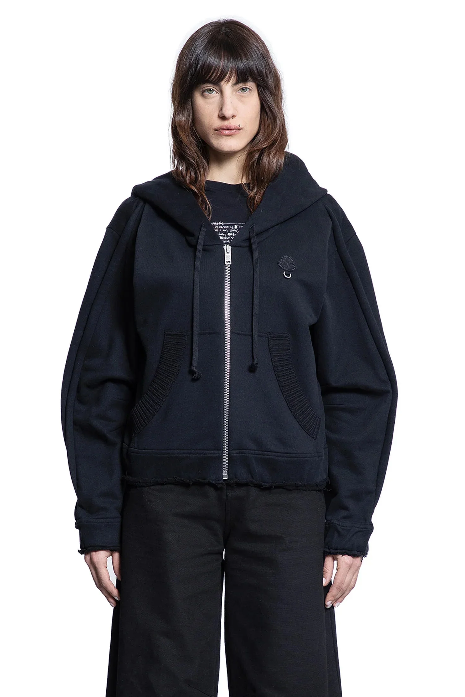 DESCRIPTION - In collaboration with willow smithblackcotton knithood with drawstrings+zip clsiruefirnt pcoketsdropped shouldersboxy fit DETAILS - Made in: Italy - Composition: 100% Cotton - Model code: 8G00001899WC 999 - Item ID: 9308727935318 SIZE & FIT Model wears size S Model Height 175 cm Bust 82 cm Waist 68 cm Hips 93 cm