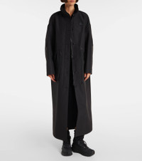 Moncler’s Winifred coat is made in Italy with a buttoned front and turtleneck collar. Featuring a drawstring waist, buttoned pockets and cuffs, and a single vent, it balances refined tailoring with functional detailing. Product Details - Material: 100% polyester - Care instructions: machine wash at 30 degrees - Made in Italy - Designer color name: Black - Item color: black - Closure: buttoned front - Collar: turtleneck - Drawstring waist - Pockets: buttoned pockets - Cuff: buttoned - Vent: single - Item number: P01106320 Size & Fit - Fits large to size - we recommend trying one size smaller - Dropped shoulders - Loose fit, drawstring waist - Non-stretchy fabric - Falls below the hip - slit length 49cm-19.5" - The model seen in the picture is 178cm-5'10" and wearing a size 00