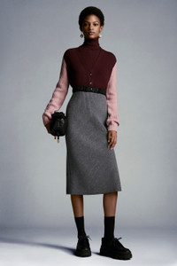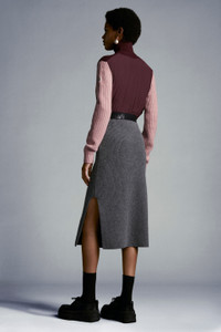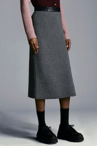 A timeless classic reinterpreted with Moncler’s distinctive flair. This wool and cashmere-blend pencil skirt will add a precious touch to everyday occasions. This pencil skirt enhances the silhouette and showcases a wool and cashmere-blend knit that is nice to the touch. - Knit skirt for women - Crafted with seven-gauge stitch wool and cashmere-blend yarn - Moss stitch knitting - Side vent - Logo elastic waistband SIZE AND FIT - The model is wearing a size S and is 177 cm tall - Designed for a slim fit COMPOSITION AND CARE BASE FABRIC: 70% Virgin wool, 30% Cashmere Do not wash; Do not bleach; Do not tumble dry; Ironing maximum temperature 110°C - without steam; Dry cleaning in tetrachloroethene or with hydrocarbons - mild process; Do not professionally wet clean; Flat dry in the shade; Wash separately; It is advisable to wash and iron the garment on reverse. Product code G20939L00004M1127985 Made in Bulgaria