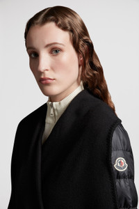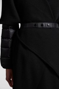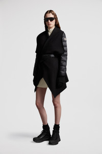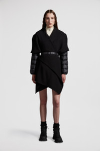 Easily styled alone or layered over lighter jackets, this women's wool cape is a practical addition to a sophisticated wardrobe. A sophisticated design, this cape is made for women who prefer to invest in luxury and comfort. Crafted from wool felt, the belted design is enhanced with down-filled longue saison sleeves. DETAILS - Crafted from wool felt and longue saison - Down-filled - Elasticized belt - Logo patch COMPOSITION OUTER SLEEVES : 100% Polyamide / Nylon; SLEEVES LINING: 100% Polyamide / Nylon; PADDING: 90% Down, 10% Feather; 1 MATERIAL: 100% Polyamide / Nylon; BASE FABRIC: 50% Acrylic, 50% Virgin wool Product code J20933G00039M5377999 Made in Moldova