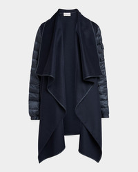 Moncler woolblend cape featuring downfilled long sleeves Shawl collar Logo patch and pocket at left sleeve Adjustable back strap Classic fit Open front Nylon/polyamide/virgin wool Fill: Down/feather Lining: Nylon Professional cleaning recommended Imported