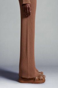 Sleek and sophisticated, these lightweight pants are crafted in a plush wool blend. Unmissable in a sophisticated woman's wardrobe, these pants crafted from a wool blend. Style the lightweight knit with matching a matching sweater for a luxe casual look. - Crafted from a wool blend - Rib knit - Gauge 14 - Elasticized waistband - Logo patch SIZE AND FIT - The model is wearing a size XS and is 175 cm tall - The model measures: bust 80 cm, waist 58 cm, hips 86 cm COMPOSITION AND CARE BASE FABRIC: 50% Acrylic, 50% Virgin wool Do not wash; Do not bleach; Do not tumble dry; Ironing maximum temperature 110°C - without steam; Dry cleaning in tetrachloroethene or with hydrocarbons - mild process; Do not professionally wet clean; Flat dry in the shade; Wash separately; It is advisable to wash and iron with the garment on reverse. Product code I20939L00008M125922C Made in Bulgaria