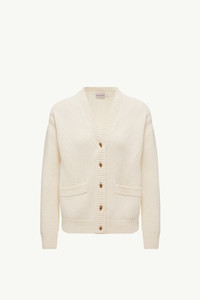 Featuring a feminine V-neck silhouette, this women's cardigan is crafted from a wool and cashmere blend. Truly timeless, this V-neck cardigan is crafted from wool and cashmere. The design subtly mixes different knitting techniques, adding a tactile finish. DETAILS - Crafted from a wool and cashmere blend - Stockinette stitch and cable knit - Gauge 5 - V-neck - Snap button closure - Front pockets - Leather logo patch SIZE AND FIT - The model is wearing a size XS and is 177 cm tall - Oversized fit COMPOSITION BASE FABRIC: 90% Virgin wool, 10% Cashmere;LEATHER TAG: CALF Product code K20939B00055M4281034 Made in Italy