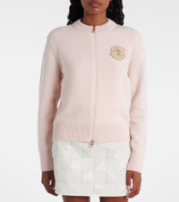 Crafted from a wool and cashmere-blend, this jacket from Moncler features a two-way zipped front. The piece is finished with a ribbed hem and cuffs. Product Details - Material: 90% wool, 10% cashmere - Care instructions: dry clean - Made in Romania - Designer color name: Light Pink - Item color: pink - Closure: two-way zipped front - Hem: ribbed - Cuff: ribbed - Item number: P01068172 Size & Fit - True to size - Dropped shoulders - Straight fit - Slightly stretchy fabric - Falls to the hip - The model seen in the picture is 178cm-5'10" and wearing a size XS
