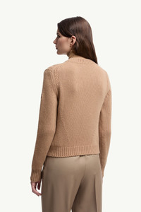Featuring a classic crew neck silhouette, this women's sweater is crafted from a wool and cashmere blend. Truly timeless, this sweater is crafted from wool and cashmere. The heavy crew neck subtly mixes different knitting techniques, adding a tactile finish. DETAILS - Crafted from a wool and cashmere blend - Stockinette stitch and cable knit - Gauge 5 - Crew neck - Leather logo patch SIZE AND FIT - The model is wearing a size XS and is 177 cm tall - Regular fit COMPOSITION BASE FABRIC: 90% Virgin wool, 10% Cashmere;LEATHER TAG: CALF Product code K20939C00019M4281230 Made in Italy