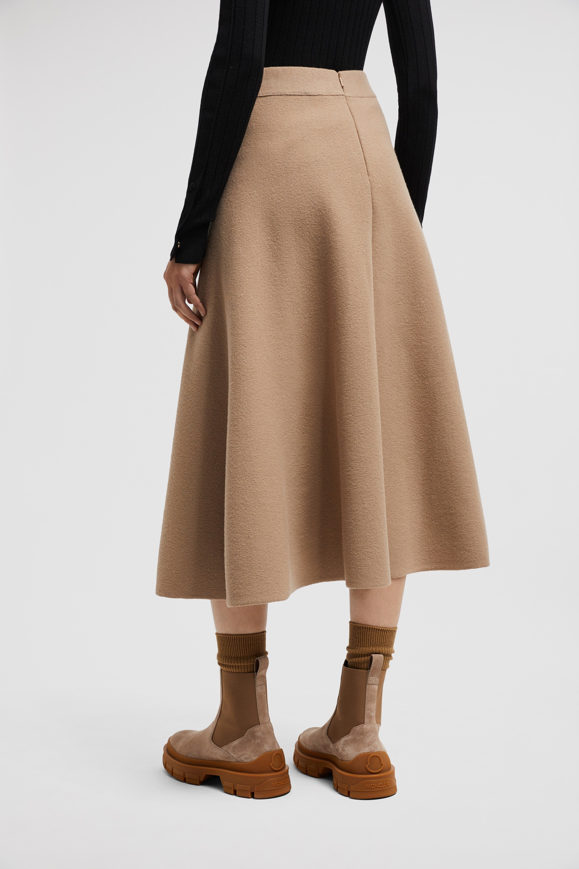 A wardrobe essential that transcend seasons, this midi skirt is crafted from a lightweight wool and cotton blend. Inspired by timeless fashion, this skirt is crafted from a luxurious blend of Merino wool and cotton. Style with warm knits and refined puffers for a sophisticated winter look. DETAILS - Crafted from extra-fine Merino wool and cotton blend - Fully-fashioned double knit - Gauge 12 - Elastic waistband SIZE AND FIT - The model is wearing a size XS and is 180 cm tall - The model measures: bust 78 cm, waist 58 cm, hips 88 cm COMPOSITION BASE FABRIC: 62% Wool, 29% Cotton, 8% Polyamide / Nylon, 1% Elastane / Spandex Product code J20939H00003M1241513 Made in Italy