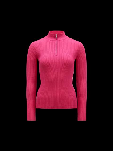 Comfort meets luxury in this plush turtleneck sweater from the women's collection, crafted from an ultra-fine Merino wool. Reinterpreting brand DNA with a young, contemporary twist, this sweater is featured in a figure-hugging slim fit. The ribbed knit turtleneck is crafted from plush merino wool, while a logo ribbon along the body adds to the design's graphic character. - Crafted from ultra-fine Merino wool - Ribbed knit - Zipped turtleneck - Bicolor logo band SIZE AND FIT - The model is wearing a size XS and is 178 cm tall - The model measures: bust 87 cm, waist 59 cm, hips 89 cm - Slim fit COMPOSITION AND CARE 1 MATERIAL: 98% Wool, 1% Elastane / Spandex, 1% Polyamide / Nylon; BASE FABRIC: 100% Virgin wool Do not wash; Do not bleach; Do not tumble dry; Ironing maximum temperature 110°C - without steam; Dry cleaning in tetrachloroethene or with hydrocarbons - mild process; Do not professionally wet clean; Flat dry in the shade; Wash separately; It is advisable to wash and iron with the garment on reverse. Product code I20939F00001M1131P50 Made in Italy