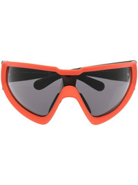 Wrapid Shield sunglasses burnt orange acetate matte finish smoke black tinted lenses UV protection shield frame curved arms curved tips logo-engraved arm These glasses come with a protective case. Made in Italy Composition Acetate 100% SIZE & FIT Measurement Arm Length 5.31 in(13.5 cm) Bridge Width 0.43 in(1.1 cm) Lens Diameter 2.75 in(7 cm) Total Width 5.9 in(15 cm)
