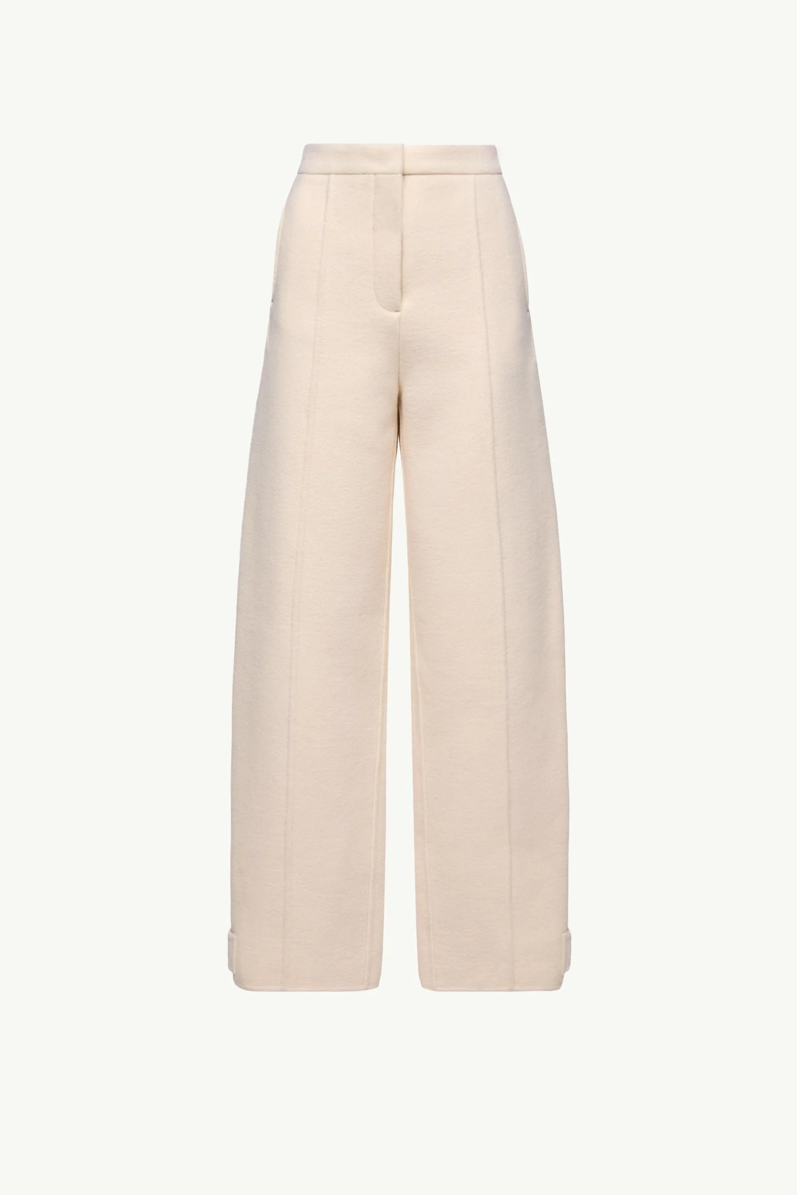 Seasonal comfort meets refined proportion in the Moncler + JIL SANDER straight leg wool pants for women. Tailoring gains new depth in the Moncler + JIL SANDER straight leg pants. Crafted from washed double wool, the bottoms fuse warmth and structure with the clarity of a timeless silhouette. Adjustable cuffs allow subtle shifts in proportion, while a metal logo discreetly signs the piece as part of the co-creation. DETAILS - Crafted from double wool - Viscose lining - Hook and zipper closure - Pockets - Adjustable cuffs - Detachable metal logo pin SIZE AND FIT - The model is wearing a size 40 and is 176 cm tall COMPOSITION BASE FABRIC: 100% Virgin wool Product code K24052A00007M6407031 Made in Italy