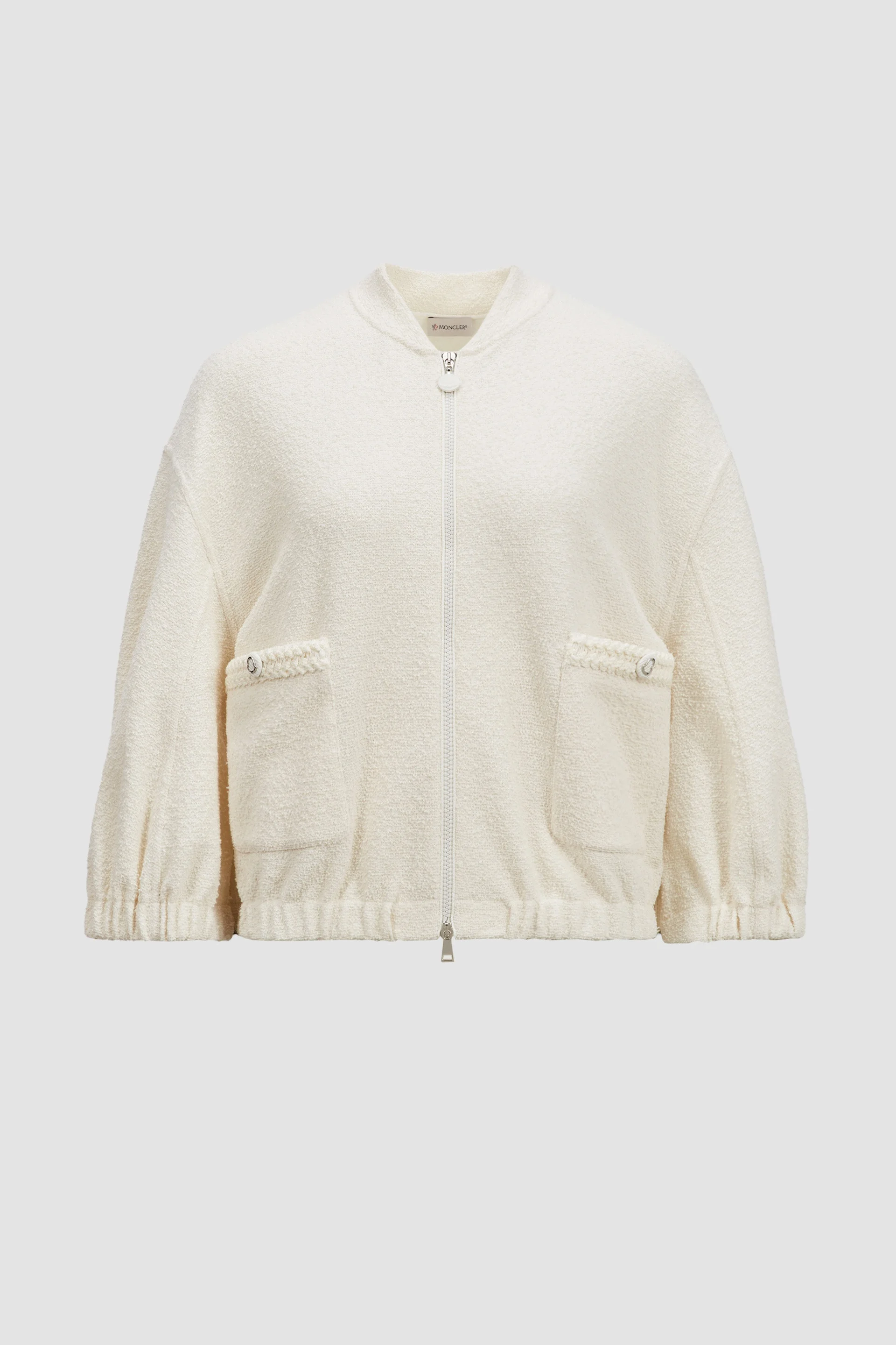 Equipped with a practical zipper closure at the sides, this cardigan for women easily transforms into a cape. Designed to be worn in two different ways, this cardigan's side zippers allow it to double as a cape. Creating a sophisticated summer set, the jacket layers over shorts in matching boucle fabric. DETAILS - Crafted from polyester and cotton blend boucle - Collar - Zipper closure - Side zipper closure - Pockets with grosgrain trim - Metal logo SIZE AND FIT - The model is wearing a size XS and is 178 cm tall - Oversized fit COMPOSITION BASE FABRIC: 60% Polyester, 36% Cotton, 2% Other fibres, 2% Elastane / Spandex Product code K10938G0002889AWR034 Made in Italy