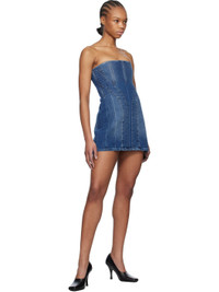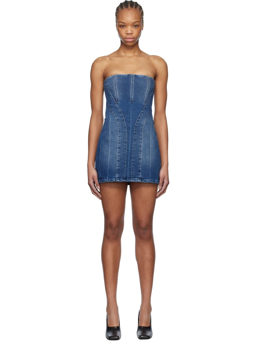 Stretch denim minidress. Fading and boning throughout. - Paneled construction - Straight neck - Zip closure at back - Full satin lining - Contrast stiching in tan Supplier color: Blue
