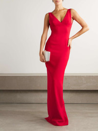 EDITORS'NOTES Monot's striking dresses are a regular fixture on the red carpet. This maxi dress is cut from vivid red crepe that closely skims your figure and falls to the floor. Complement the plunging neckline with a diamond necklace. SIZE & FIT Model measurements: - Fits very large to size, take two sizes smaller than normal - Designed for a close fit - Lightweight, non-stretchy fabric - Model is 177cm/ 5'10", normally wears an IT 40 and is wearing an IT 36 - Bust: 85cm/ 33.5" - Waist: 62cm/ 24.5" - Hip: 91cm/ 36" DETAILS & CARE - Red crepe - Hook and zip fastening at back - 100% polyester - Dry clean