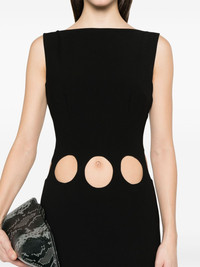 hole-detail maxi dress Highlights - Black - Concealed rear hook and zip fastening - Rear slit - Full lining - Low back Imported Composition Polyester 100% SIZE & FIT Model measurements Height 5 ft 10 in(1.78 m) Bust/Chest 33.85 in(86 cm) Hips 36.61 in(93 cm) Waist 26.77 in(68 cm) FittingInformation Designed for a close fit throughout The vented hem offers movement at the rear Made from a midweight non-stretch fabric, this piece offers minimal elasticity when worn