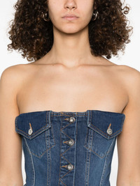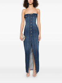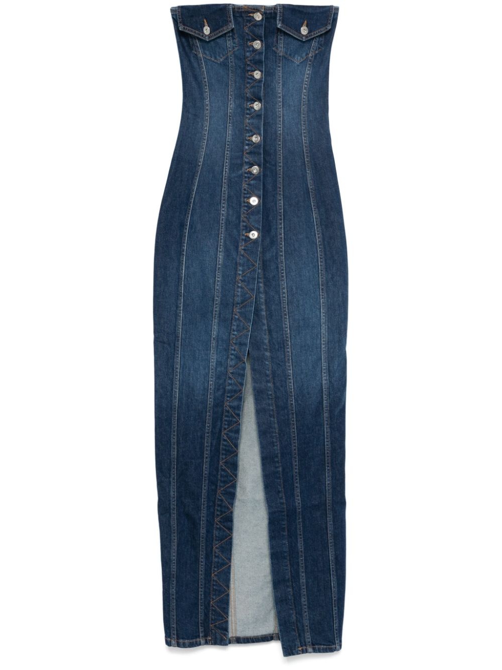 denim maxi dress Highlights - Indigo blue - Front button fastening - Bandeau style - Strapless - Two chest flap pockets Made in Italy Composition Cotton 100% SIZE & FIT Model measurements Height 5 ft 10 in(1.79 m) Bust/Chest 31.88 in(81 cm) Hips 35.43 in(90 cm) Waist 23.62 in(60 cm) FittingInformation Designed for a close fit throughout Constructed from stretch denim, this piece offers a stretch fit with durability