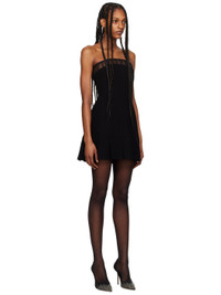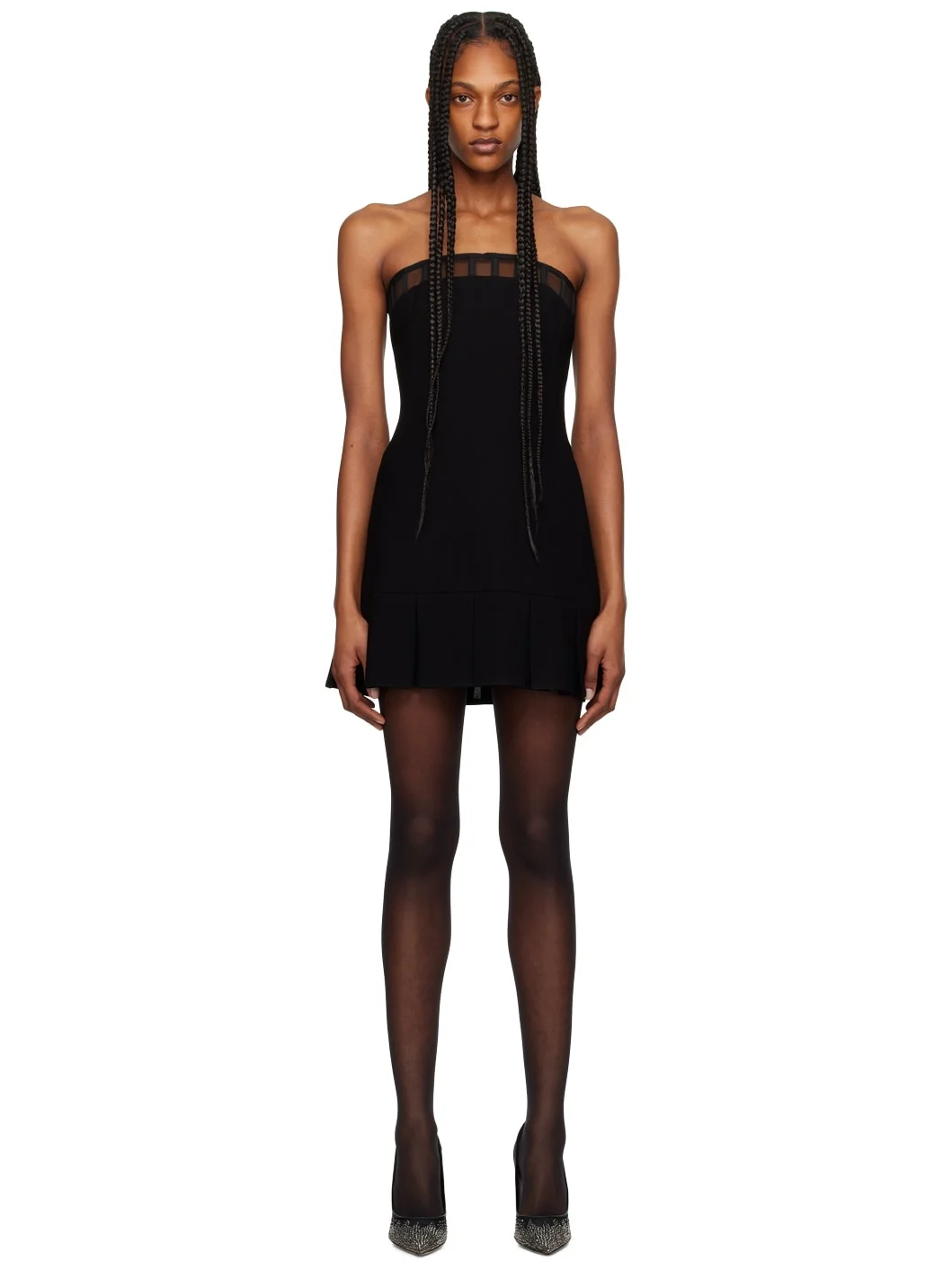 Polyester crepe and mesh dress. Hook-eye fastening and boning at integrated corset-style underlay. · Layered construction · Straight neck · Pleats at hem · Concealed zip closure at back Supplier color: Black 100% polyester. Made in Lebanon 241658F052006