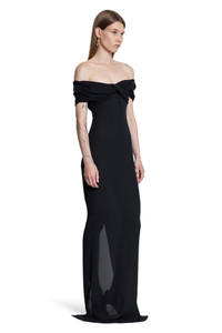 DESCRIPTION - Black - Stretch jersey - Off hte shoulder neckline - Front draping - Back zip closure - Back split - Floor length - Fitted DETAILS - Model code: 25S10 BLACK - Item ID: 9634168897878 SIZE & FIT Model wears size 38 Model Height 174 cm Bust 78 cm Waist 60 cm Hips 86 cm