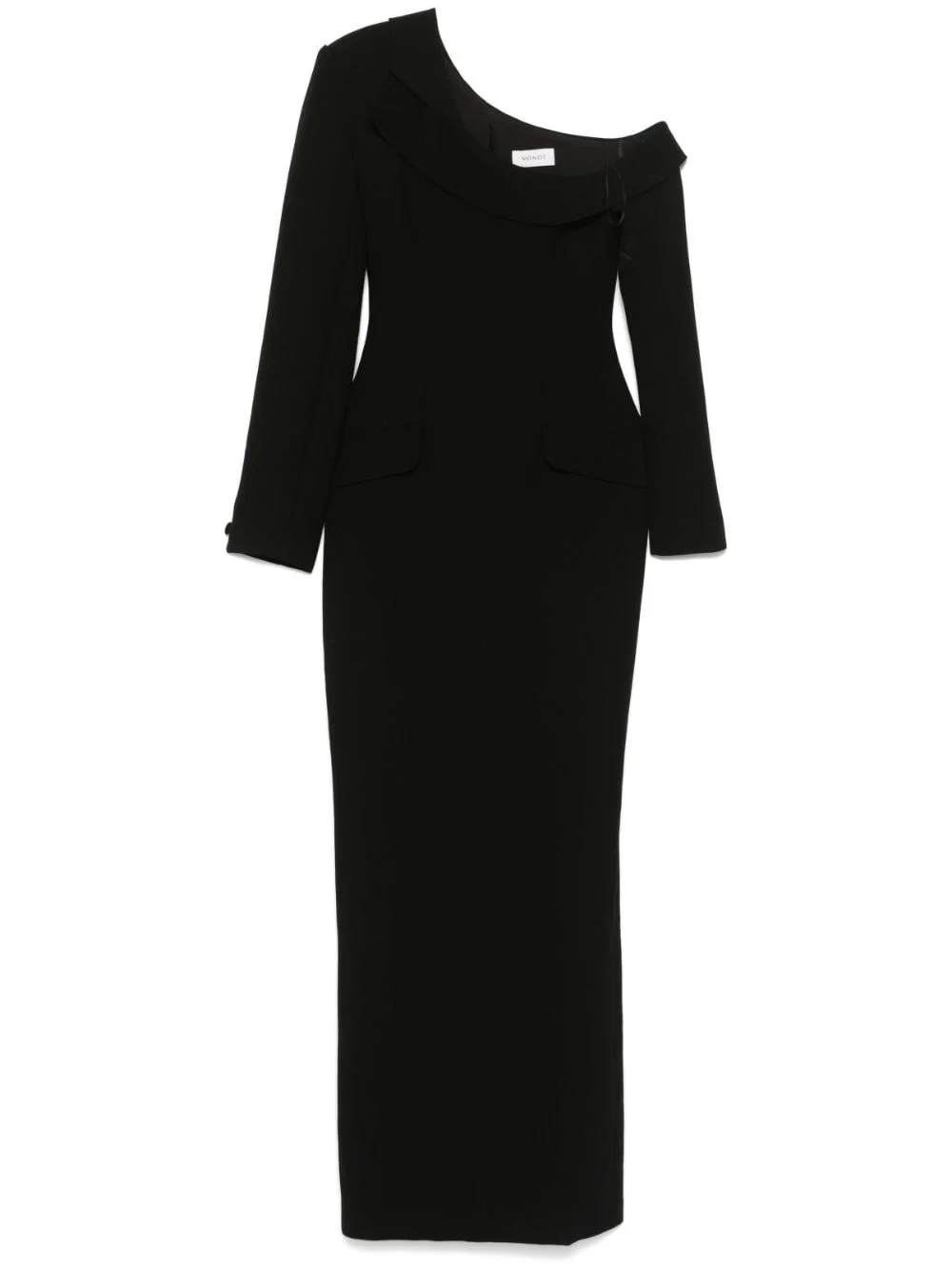one-shoulder gown Highlights - Black - One-shoulder - Concealed rear zip fastening - Single wide peak lapel - Single shoulder pad - Single long sleeve - Decorative button detailing - Faux pockets - Maxi skirt - Central rear vent - Full lining - Straight hem - Long length Imported Composition Polyester 100% SIZE & FIT Model measurements Height 5 ft 9 in(1.75 m) Bust/Chest 31.88 in(81 cm) Hips 34.64 in(88 cm) Waist 24.01 in(61 cm) FittingInformation Designed for a close fit throughout The internal shoulder pads offer a structured shape Made from a midweight non-stretch fabric