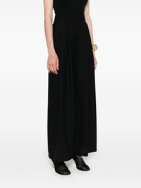pleated trousers Highlights - Black - Concealed front button, hook and zip fastening - Belt loops - Two side inset pockets - Dart detailing Made in Italy Composition Virgin Wool 100% SIZE & FIT Model measurements Height 5 ft 10 in(1.79 m) Bust/Chest 35.43 in(90 cm) Hips 35.03 in(89 cm) Waist 25.19 in(64 cm) FittingInformation Designed with a wide-leg cut, these trousers allow for a close fit at the waist and offer a loose and roomy fit over the leg Made from a midweight non-stretch fabric