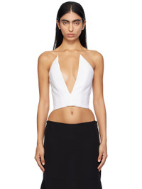 Polyester crepe corset-style top. · Plunging V-neck · Boning at bodice · Concealed zip closure at back · Adjustable hook-eye tab at interior Supplier color: White 100% polyester. Made in Lebanon 242658F111002