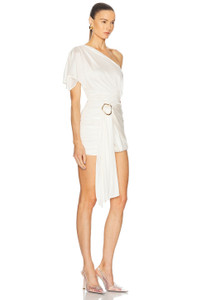 Details - 100% seta silk - Dry clean only - Fully lined - Pull-on styling - One-shoulder styling - Ruched design - Gold-tone buckle accent with drape detail - Midweight satin fabric - Made in Italy - Our Style No. MNOX-WD74 - Manufacturer Style No. 25SNDDR210