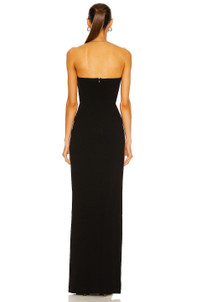 Details - 63% viscose, 34% acetate, 3% elastane - Made in USA - Dry clean only - Fully lined - Hidden back zipper closure - Non-slip silicone grip lining and light padded cups - Bonded bodice - High-cut slit - Crepe fabric - Our Style No. MNOX-WD3 - Manufacturer Style No. PF2021DR07