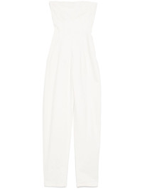 strapless denim jumpsuit Highlights - White - Side zip fastening - Bustier-style neckline - Straight leg Made in Italy Composition Cotton 98%, Elastane 2% SIZE & FIT Model measurements Height 5 ft 10 in(1.77 m) Bust/Chest 29.92 in(76 cm) Hips 34.25 in(87 cm) Waist 23.62 in(60 cm) FittingInformation Designed for a close fit at the chest and waist, but loose at the hip Particularly long in length; consider your own measurements Constructed from stretch denim, this piece offers a stretch fit with durability Washing instructions Machine Wash