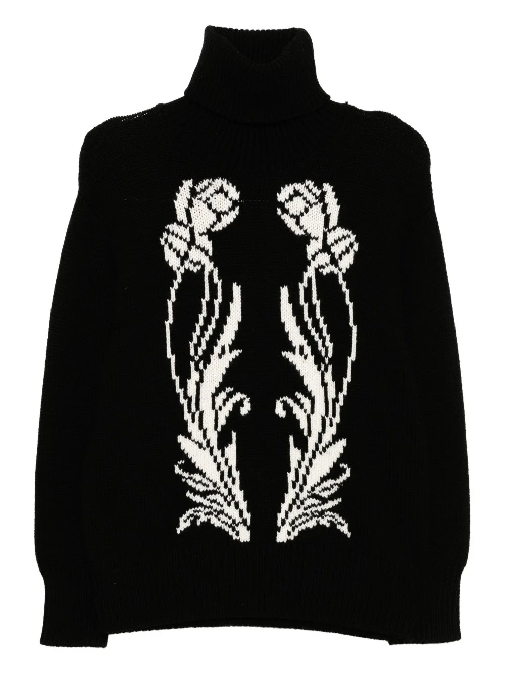art deco-intarsia knit jumper Highlights - Black - Roll neck - Long sleeves - Ribbed cuffs and hem Imported Composition Wool 100% Washing instructions Dry Clean Only