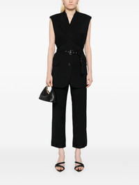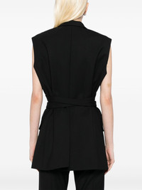 belted gilet Highlights - Black - Sleeveless - V-neck - Belted waist Made in United States Composition Wool 95%, Elastane 5% SIZE & FIT Model measurements Height 5 ft 9 in(1.76 m) Bust/Chest 31.1 in(79 cm) Hips 35.03 in(89 cm) Waist 24.4 in(62 cm) FittingInformation Designed for a slim fit that sits just away from the body offering a close yet comfortable fit The belt offers adjustability for fitted preferences Made from a midweight non-stretch fabric Washing instructions Dry Clean Only