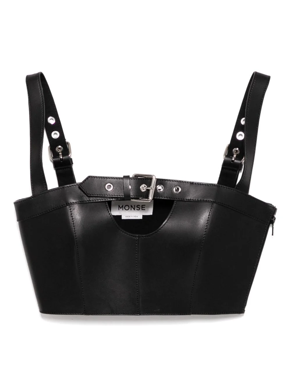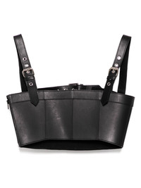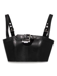 buckled leather top Highlights - Black - Two adjustable shoulder straps - Front buckle fastening - Panelled design Imported Composition Leather 100%